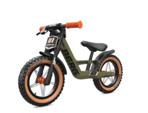 La Biky está fabricada con un cuadro de magnesio de color verde, extra fuerte y muy ligero para que no les cueste desplazarla. No tiene pedales, pero sí un asiento ajustable en altura a un mínimo de 32 cm y un máximo de 45 cm. También dispone de un reposapiés en el cuadro con superficie antideslizante. Al disponer de reposapiés favorece que los niños practiquen su equilibrio y se atrevan a correr con solo las dos ruedas, sin poner los pies en el suelo.
