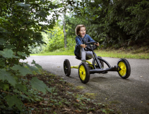 El kart de pedales Buddy Cross tiene el sistema BFR, es un sistema intuitivo para niños, sólo accionando los pedales puede ir marcha adelante, marcha atrás, piñón libre y frenar.